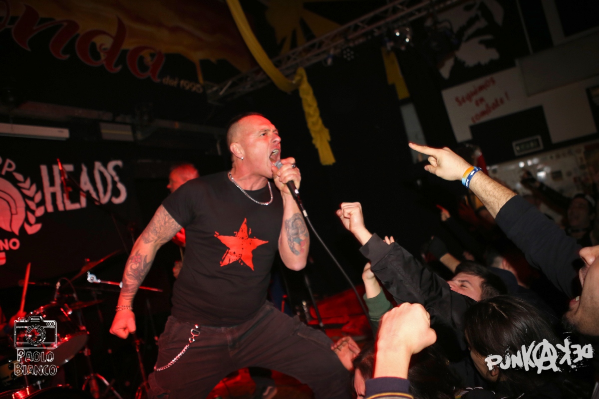 E’ quindi il turno dei padroni di casa, Sempre Peggio sul palco dei Baraonda a soli due mesi di distanza dalla festa per celebrare i loro 10 anni di attività. Paragonati a molti dei nomi che suonano stasera, 10 anni sembrano davvero pochi, ma con grinta, cattiveria e con le canzoni giuste il gruppo milanese si è fatto largo nei cuori di chi li ascolta. Il loro concerto è il più cantato, sudato, pogato e ricco di stagediving. C’è anche il tempo di festeggiare i 18 anni del bassista di Ostile e Mad Pain, e per diffondere il messaggio più potente della serata, quando Martin ci consiglia di non limitarci a ricordare “Quei Nomi”, ma di studiare bene la storia e le azioni degli antifascisti, “perché fra poco toccherà a noi ripetere le loro gesta”.